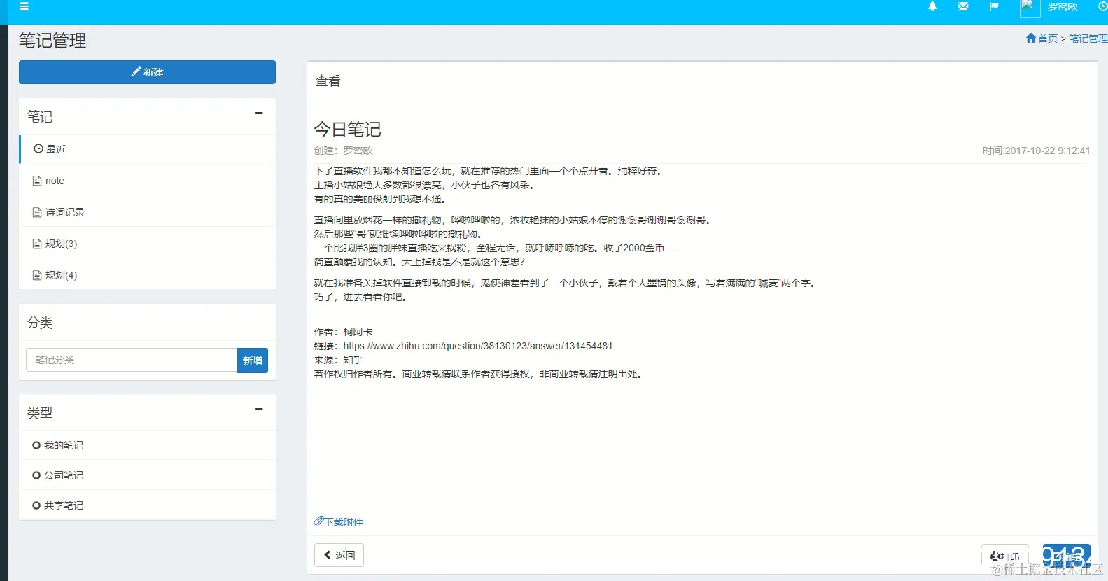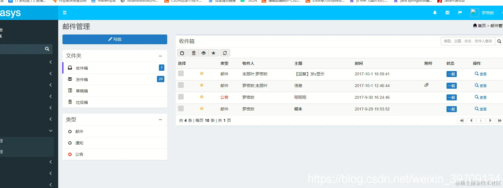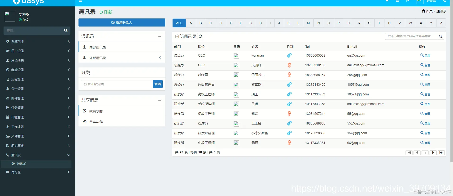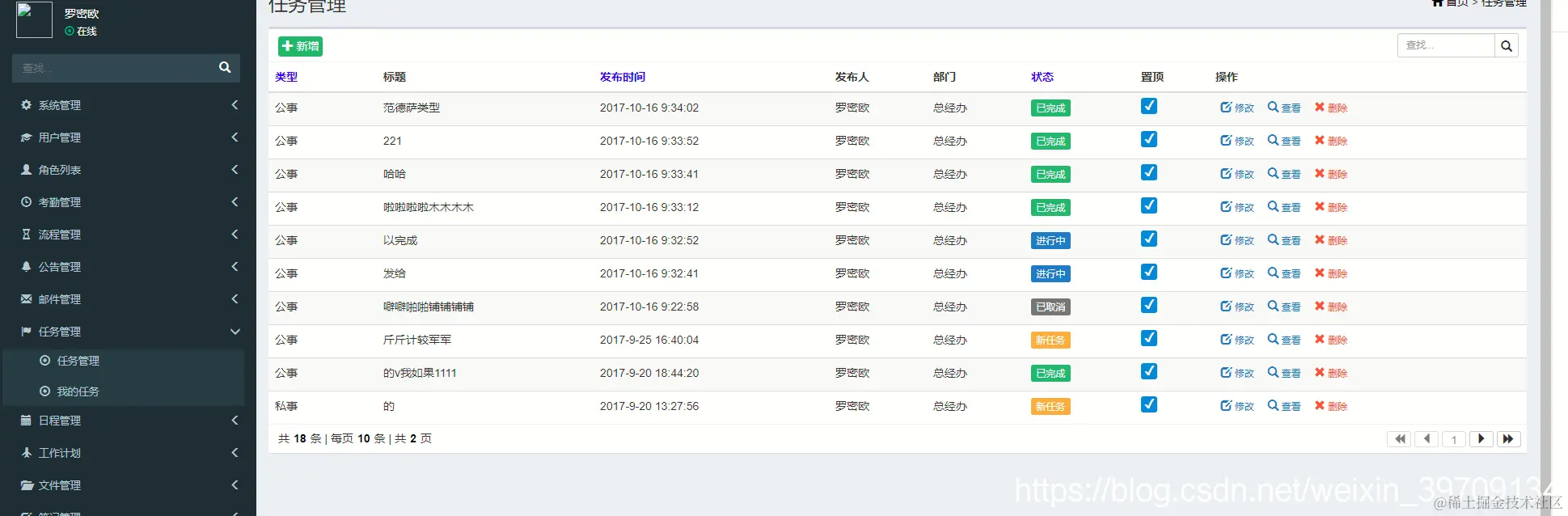 主要功能模块:系统、用户、角色、考勤、流程、公告、邮件、任务、日程、计划、文件、笔记、通讯录、讨论区等多个模块管理 使用Maven进行项目管理,基于springboot框架开发的项目,mysql底层数据库,前端采用freemarker模板引擎,Bootstrap作为前端UI框架,集成了jpa、mybatis等框架。