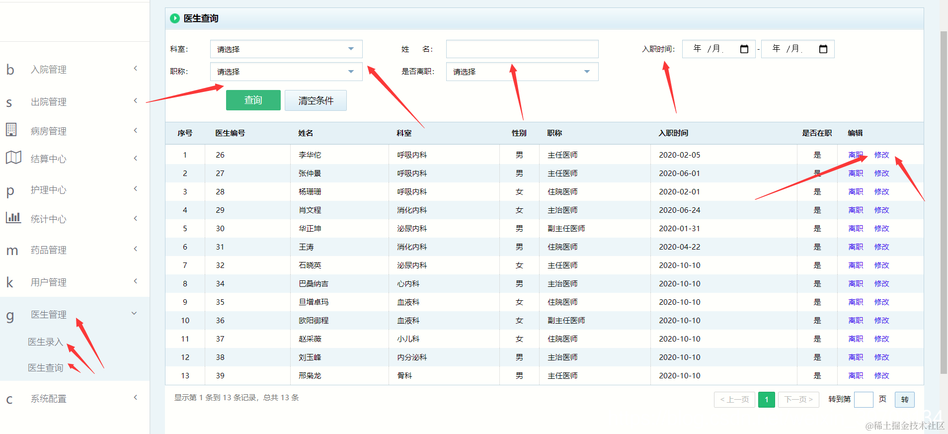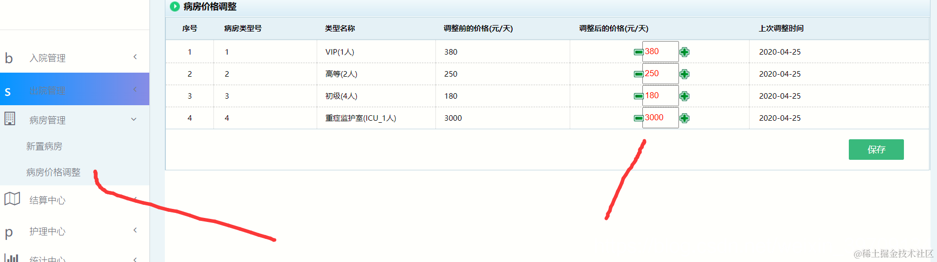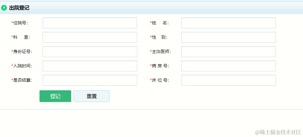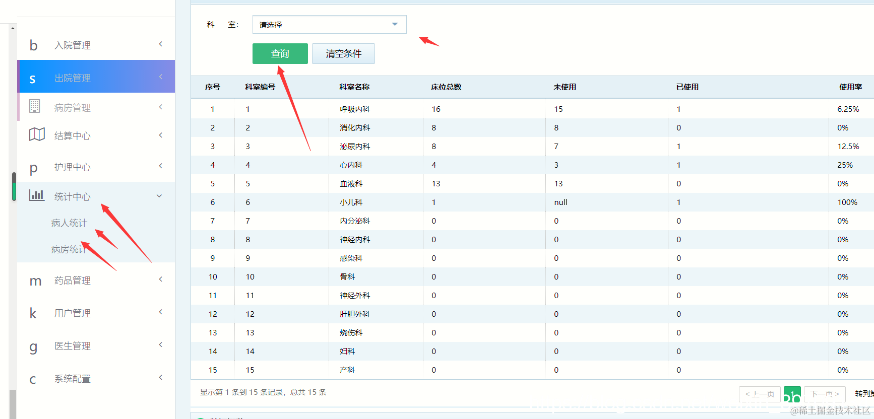 出院管理:主要有出院查询功能/出院登记以及病房的管理: