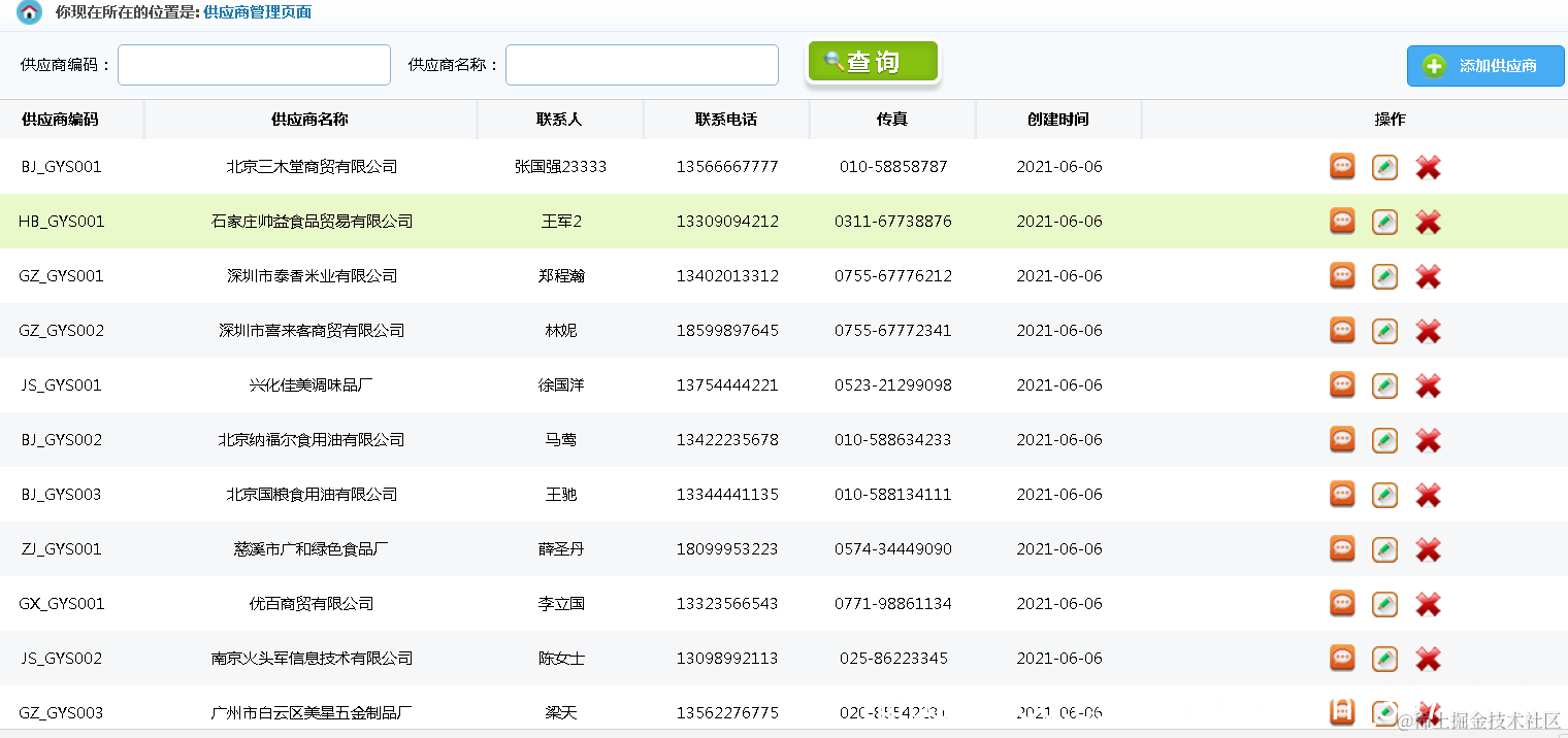 供应商管理:添加供应商、按条件分页查询供应商数据、查看供应商详情、修改供应商数据、删除
