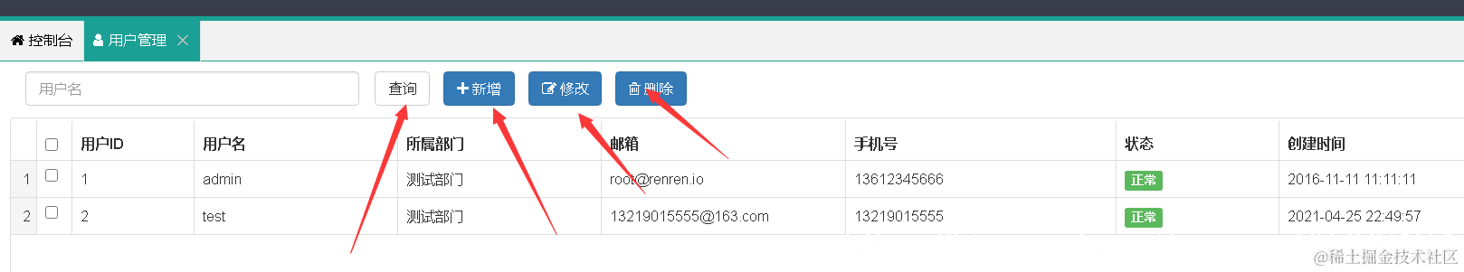具体功能模块:用户模块、角色模块、菜单模块、部门模块以及灵活的权限控制,可控制到页面或按钮,满足绝大部分的权限需求