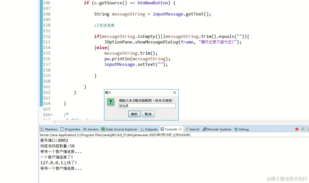 这样一个简单的基于Java TCP模拟的聊天室完成了