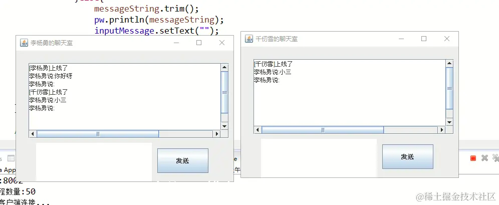 定义服务器端的界面,添加事件侦听与事件处理。调用 start类 Socket方法来实现 服务端用户上线与下线的侦听, 调用 Socket类来实现服务器端的消息的 收发。