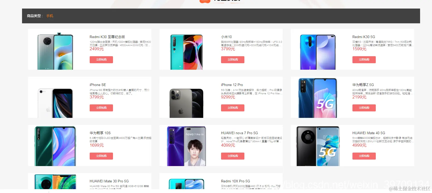 都能满足你的需求。原始Jsp、SSM、SpringBoot、以及HTML+CSS+JS页面设计, web大学生网页设计作业源码等等都可以参考得到解决。话不多说直接拿一个前后端分离网上手机商城平台系统来举例