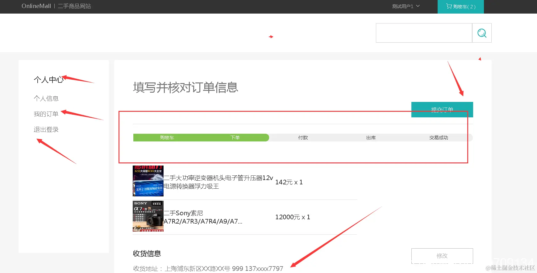 我的订单流程以及收获地址信息等
