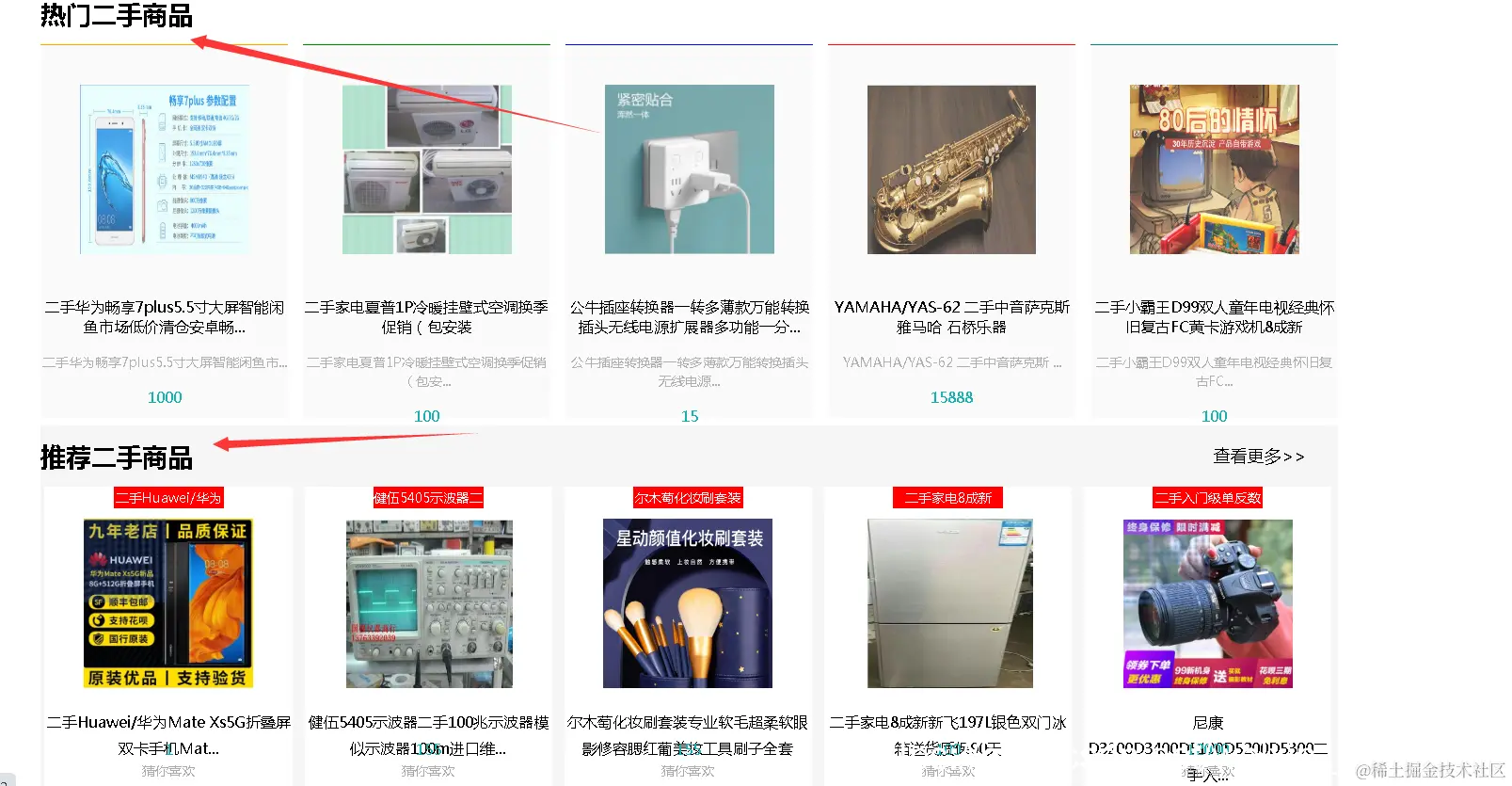一些热门和推荐的二手商品信息、可以再后台进行配置这些