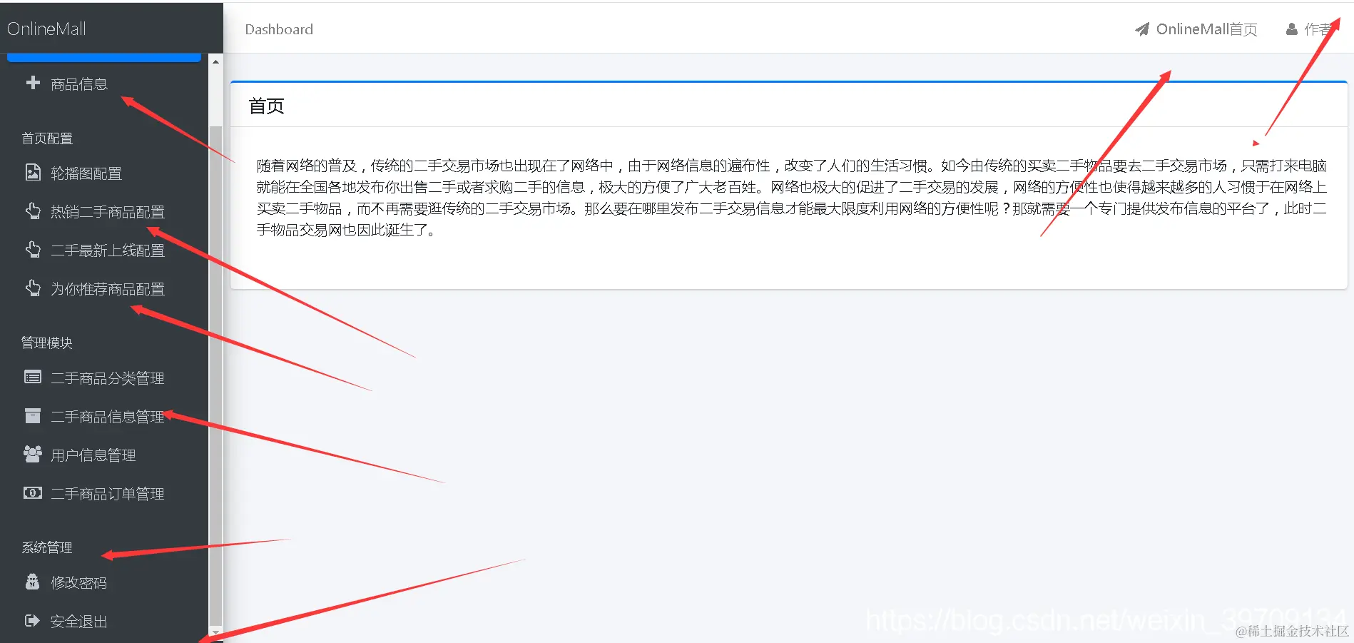 主要技术设计:spring、 springmvc、 springboot、 mybatis 、 jquery 、 md5 、bootstarp.js tomcat、富文本编译器、拦截器等