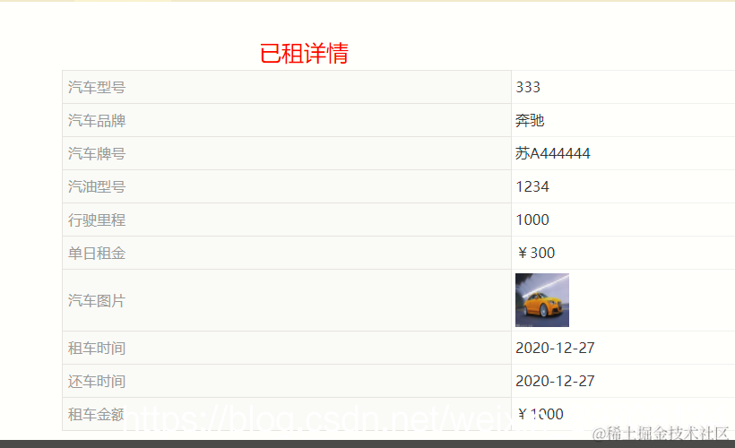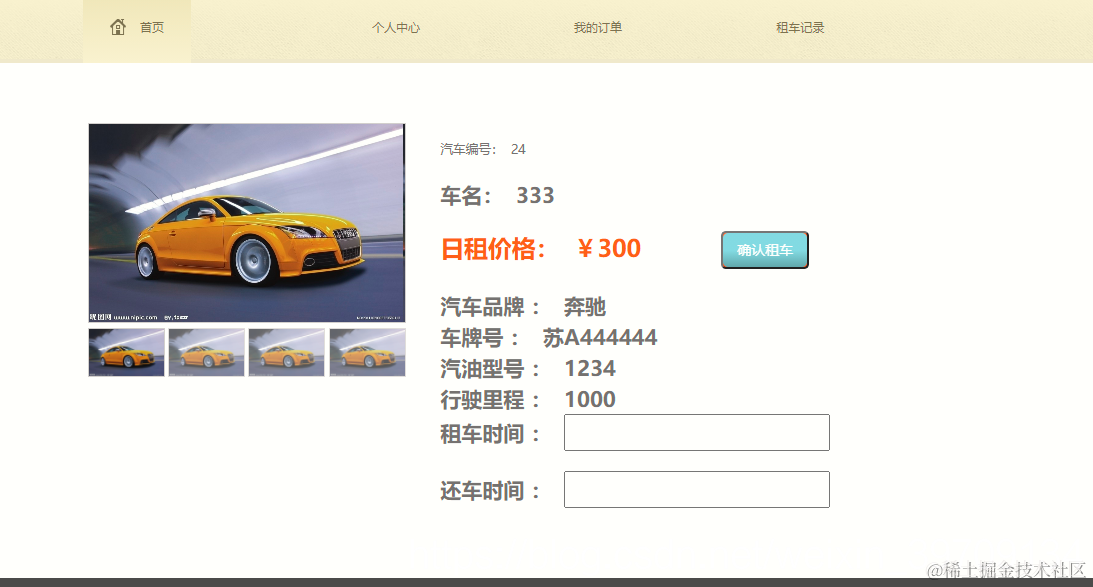 查看汽车详细信息,提交租车订单,