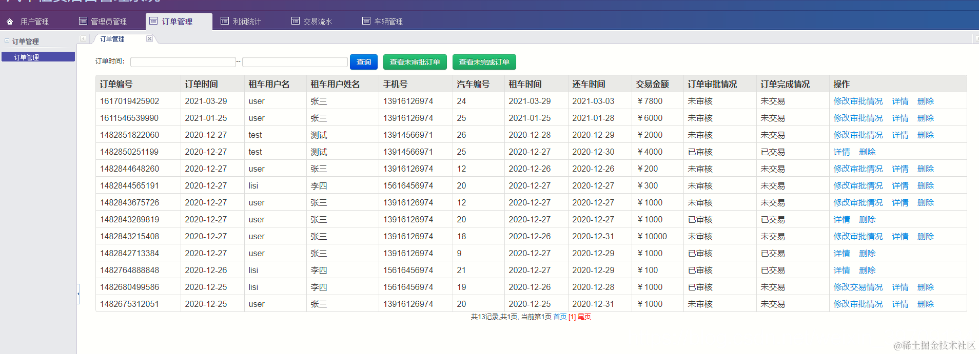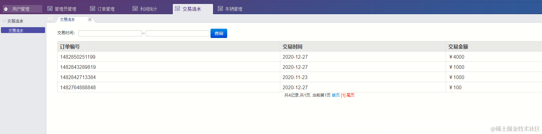 交易流水管理车辆管理,