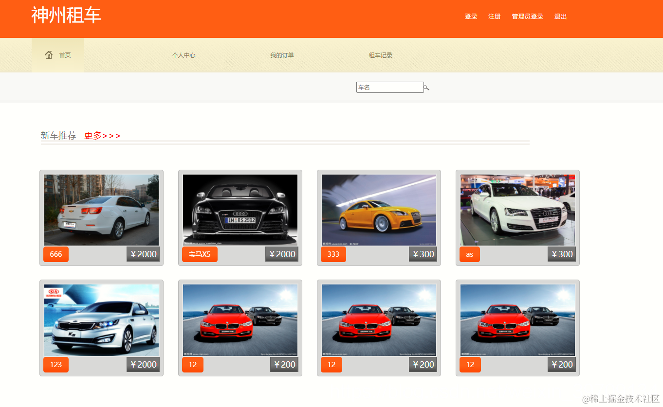 用户登录页面,查看所有租车信息,