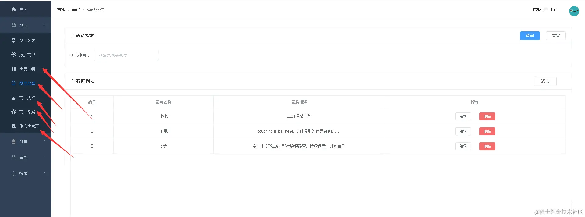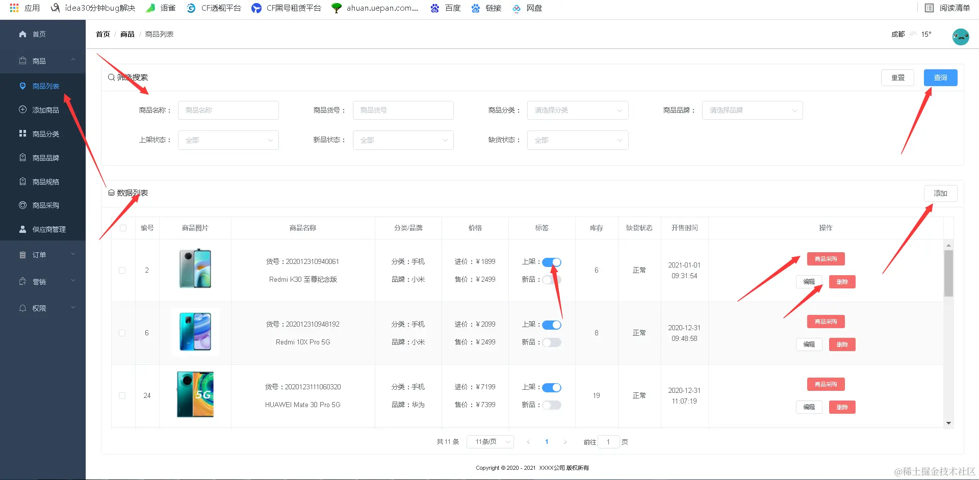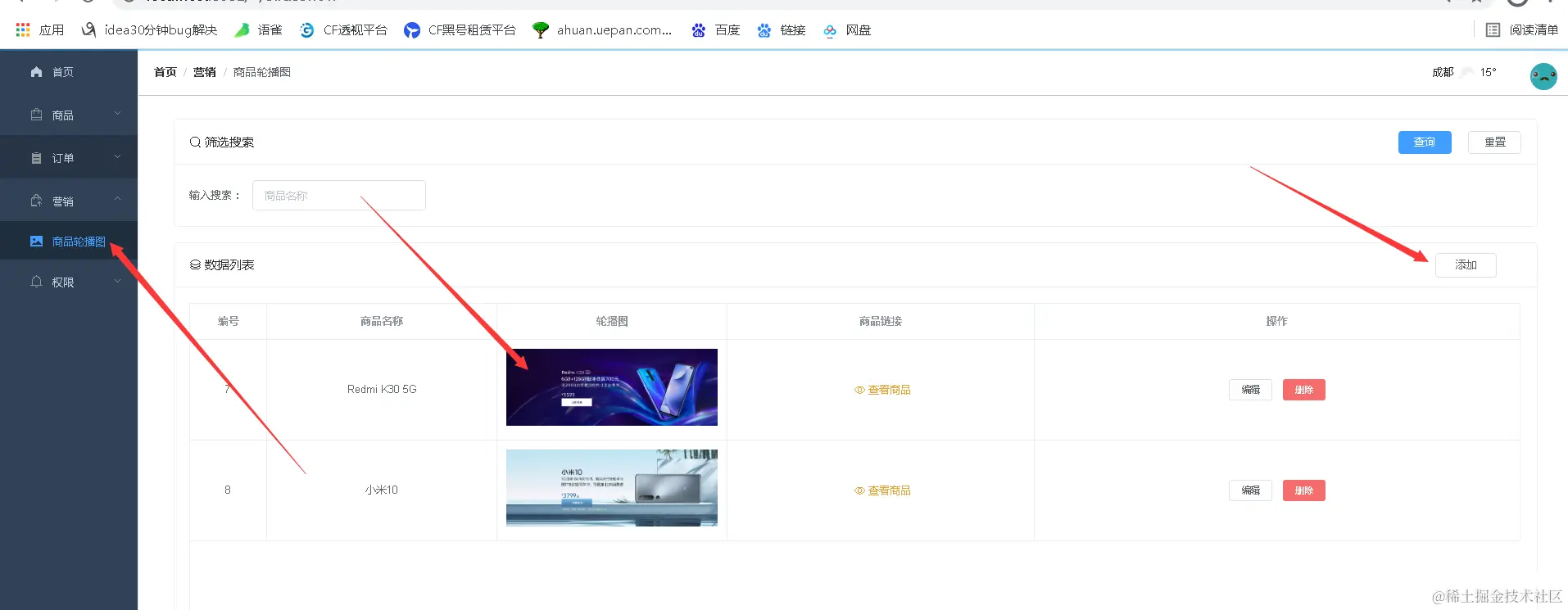 商品列表数据管理