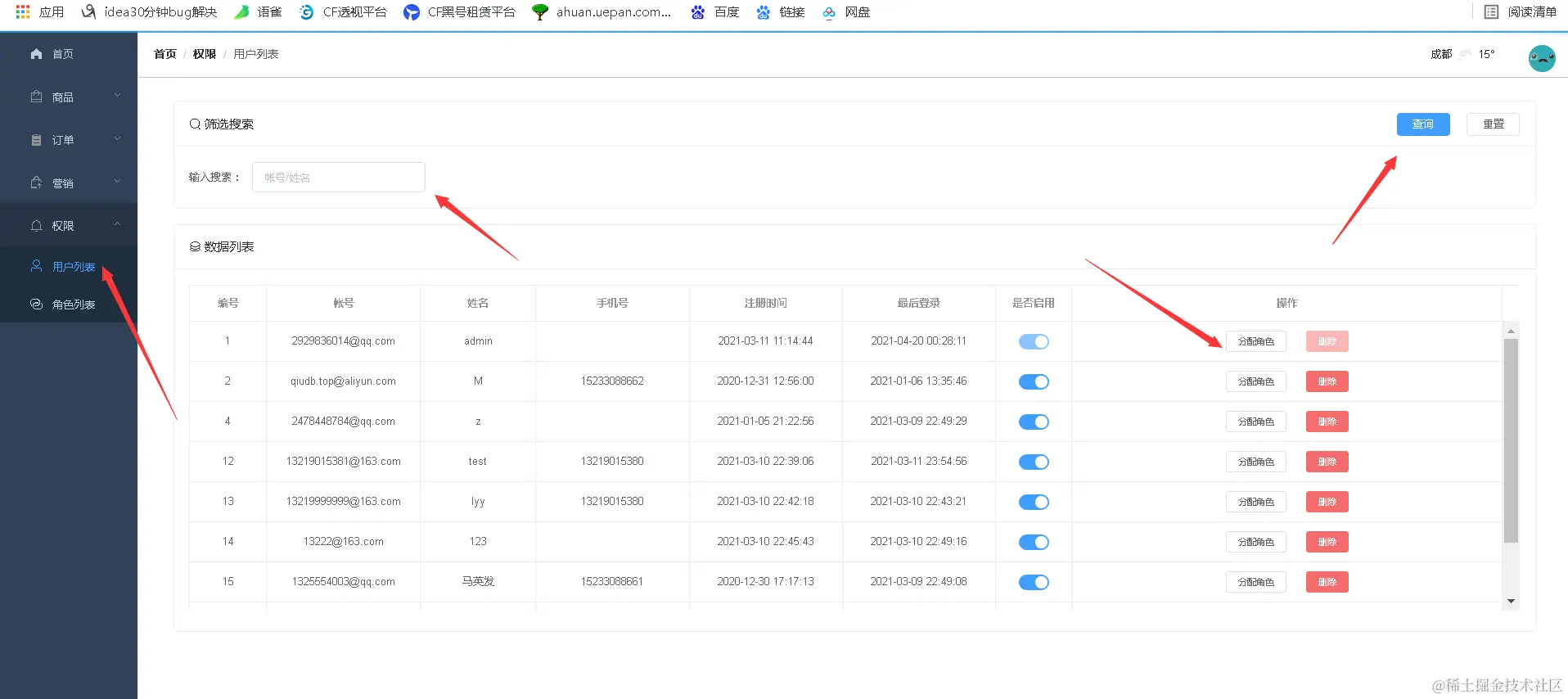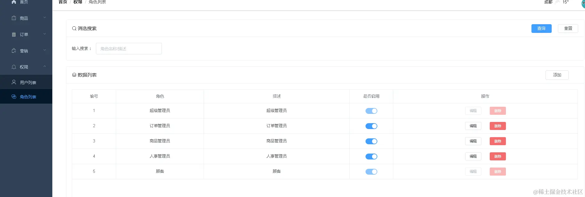 用户角色和权限管理控制: