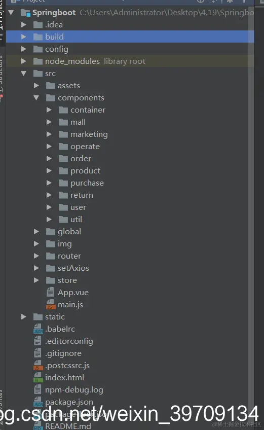 前后端源码结构:由于本人是主后端开发、所有工具都是用的idea进行演示、都是支持的