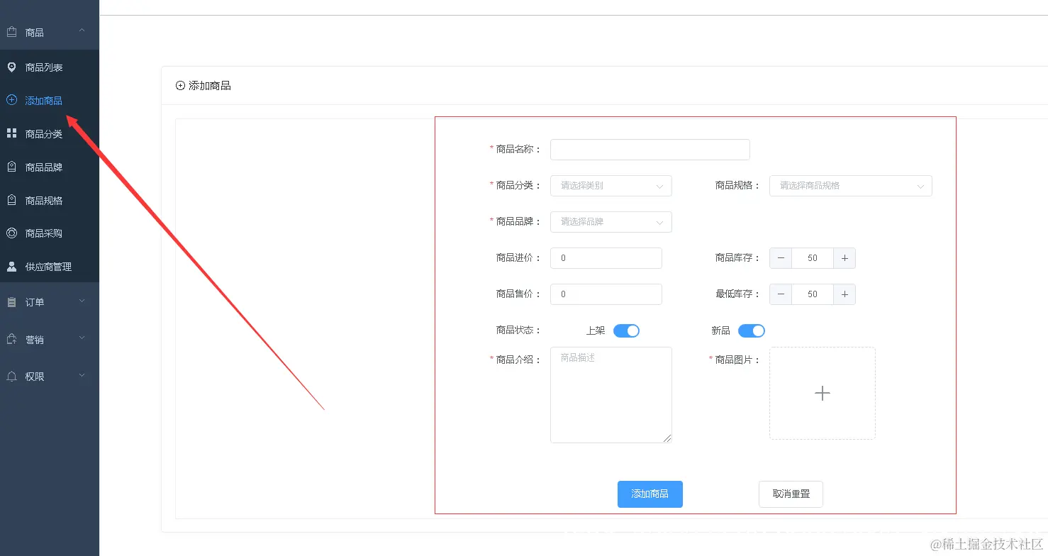 后台添加商品信息: