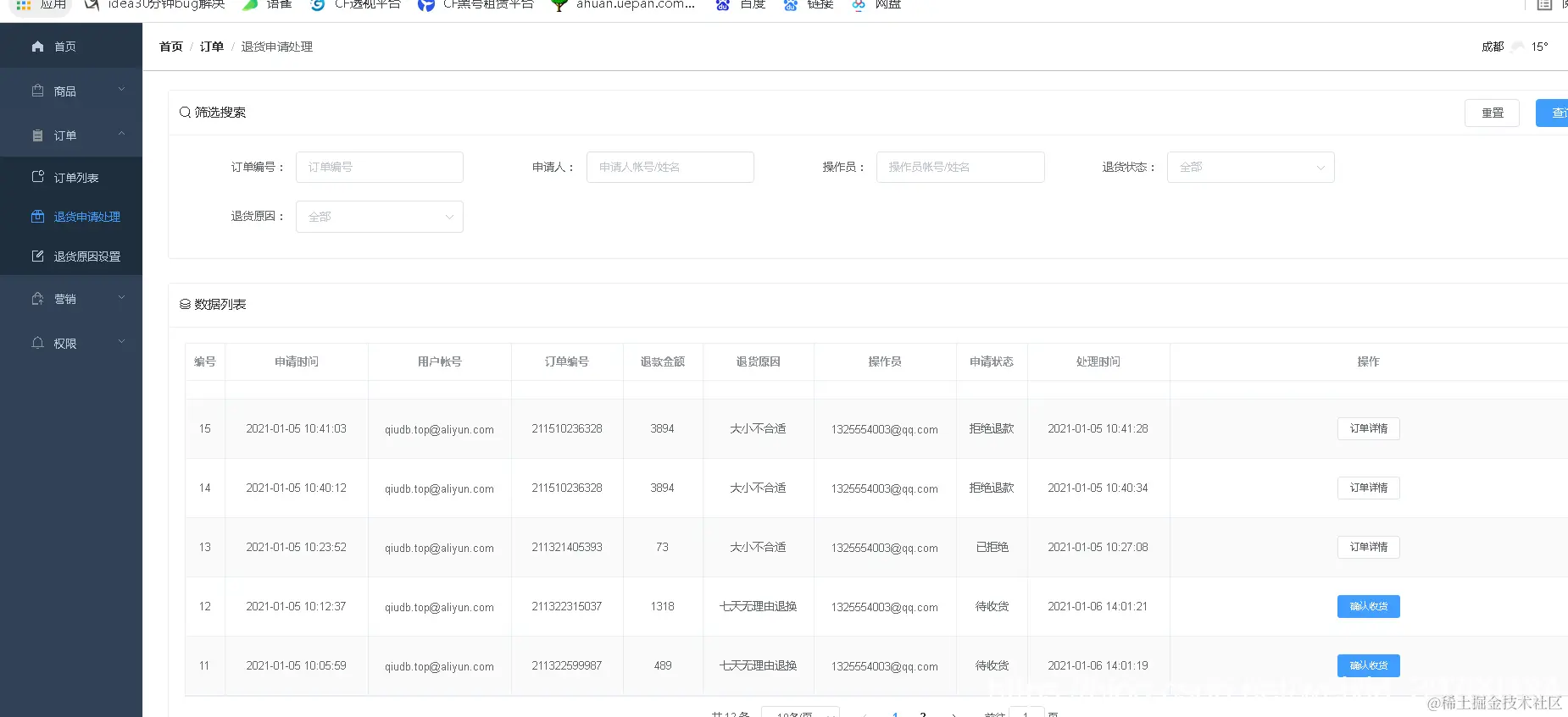 后台管理员主要对商品数据进行管理、分类管理、订单管理以及用户管理扥。