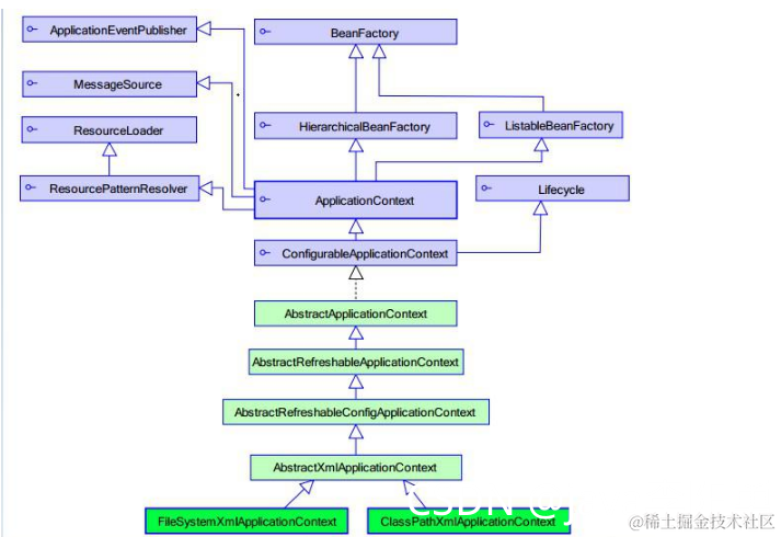 > BeanFactory 接口提供了一个先进的配置机制,使得任何类型的对象的配置成为可能。ApplicationContex 接口对 BeanFactory(是一个子接口)进行了扩展,在 BeanFactory 的基础上添加了其他功能,比如与 Spring 的 AOP 更容易集成,也提供了处理 message resource 的机制(用于国际化)、事件传播以及应用层的特别配置,比如针对 Web 应用的WebApplicationContext。