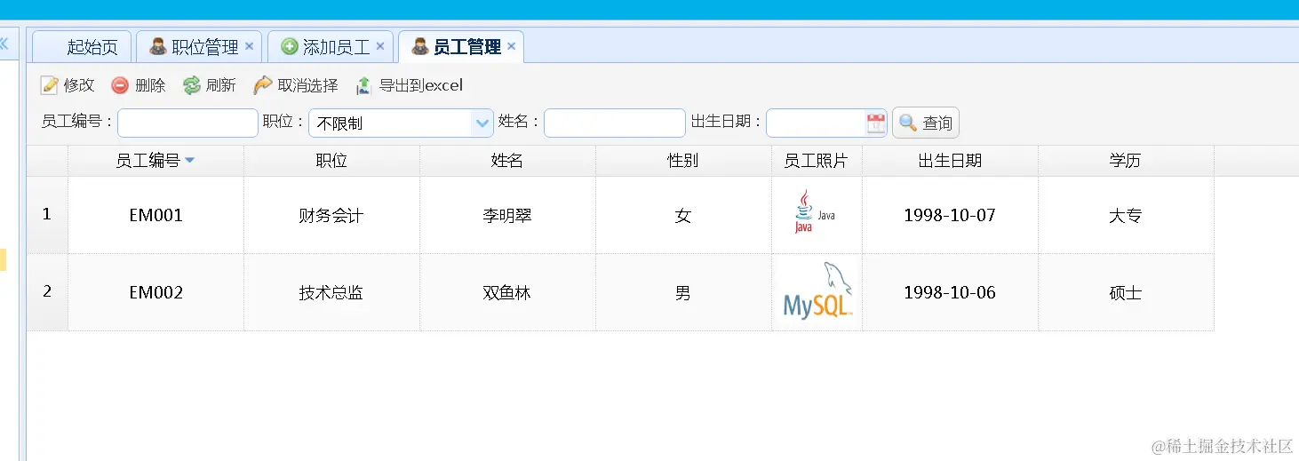 5.对员工数据进行Excel导出功能