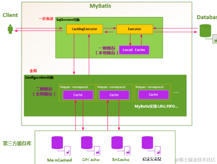 MyBatis的二级缓存是Application级别的缓存,它可以提高对数据库查询的效率,以提高应用的性能。二级缓存与一级缓存其机制相同,默认也是采用PerpetualCache,HashMap存储,不同在于其存储作用域为Mapper(Namespace),并且可自定义存储源,如Ehcache。默认不打开二级缓存,要开启二级缓存,使用二级缓存属性类需要实现Serializable序列化接口(可用来保存对象的状态),可在它的映射文件中配置<cache/>;