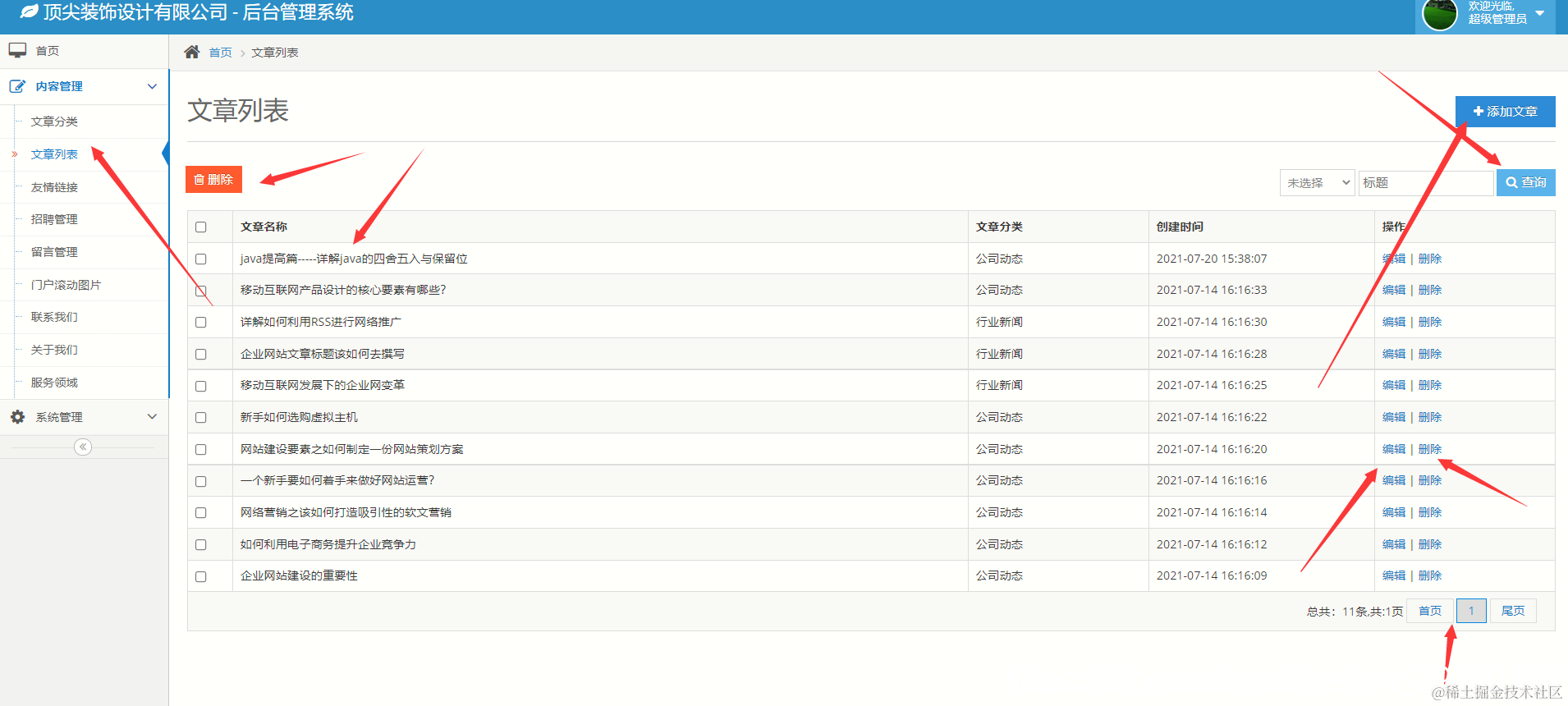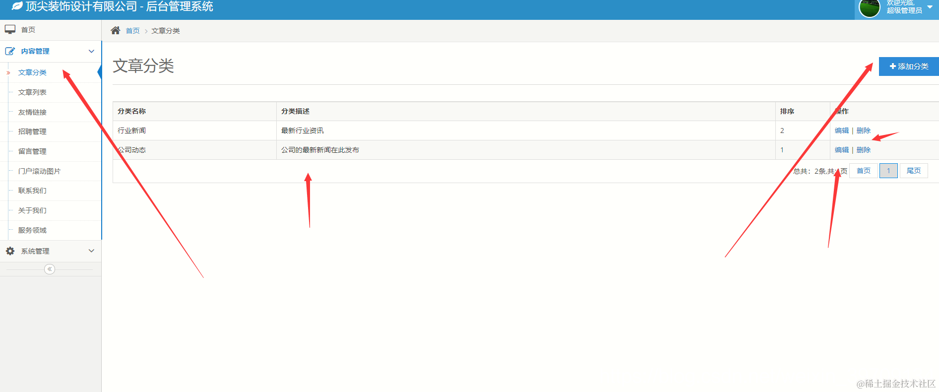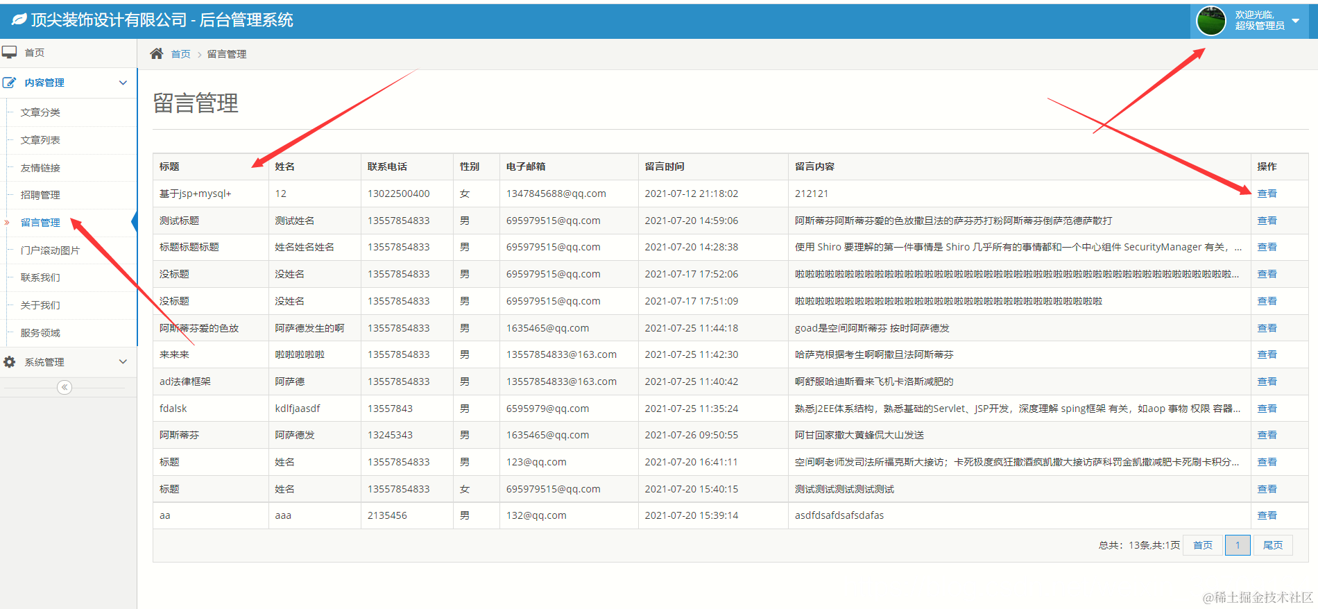 管理员角色功能:管理员登录,文章分类管理,文章列表管理,友情链接管理,招聘管理,留言管理,滚动图片管理,联系我们,关于我们,网站管理员管理,日志管理等功能。