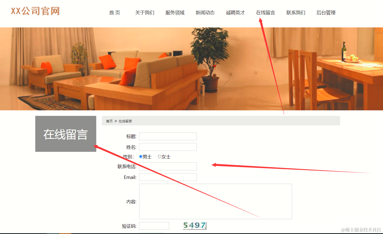 学生角色下功能:用户首页,关于我们,服务领域发布,新闻动态,诚聘英才,在线留言,联系我们等功能。