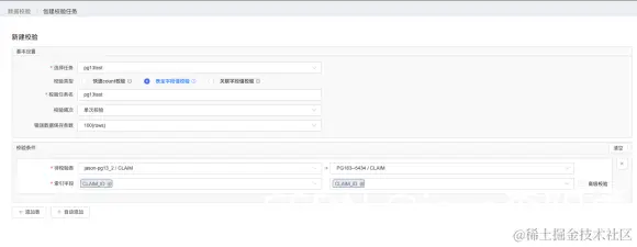 还有一个校验方式关联字段值校验 ,创建关联字段值校验时,除了要选择待校验表外,还需要针对每一个表设置索引字段。