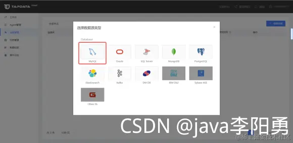 MySQL 数据实时同步到 Elasticsearch 、MongoDB、SQL Server、PostgreSQL、DM DB 达梦数据库、Kafka 的方式也都是先配置源和目标的连接,然后新建任务选择同步模式:全量/增量/全量+增量,因为步骤相同,其他就不再贴图说明了。创建连接的时候,有没有发现:DB2、Sybase、Gbase 几个数据库现在是灰色锁定状态,应该是在开发中了,可能后续也会支持这些数据库的同步功能。