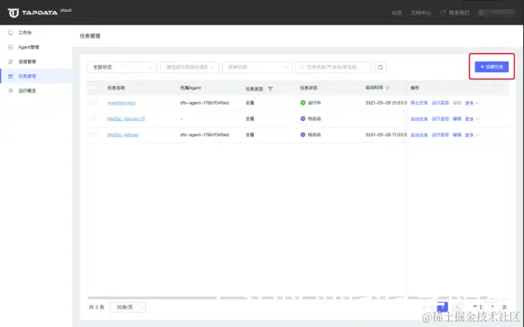 进入Tapdata Cloud 操作后台任务管理页面,点击添加任务按钮进入任务设置流程