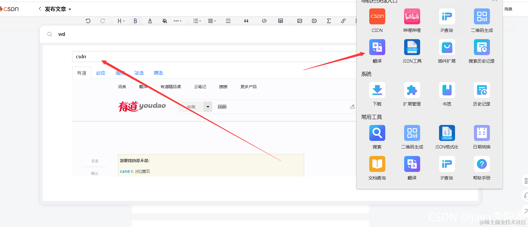 一键翻译:直接右侧呼出有道翻译、查词以及工作效率飙升