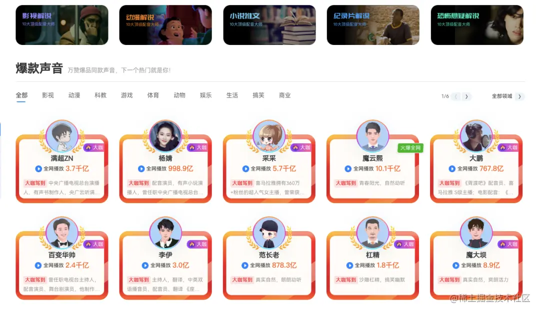 应有尽有的声音商店,超多影视配音大佬声音可选,视频配音分板块推荐,心仪配音可以单独购买;