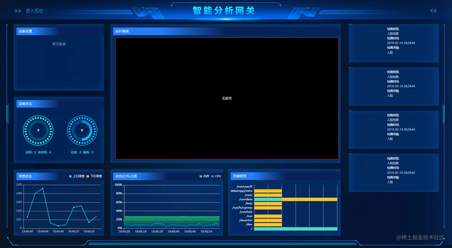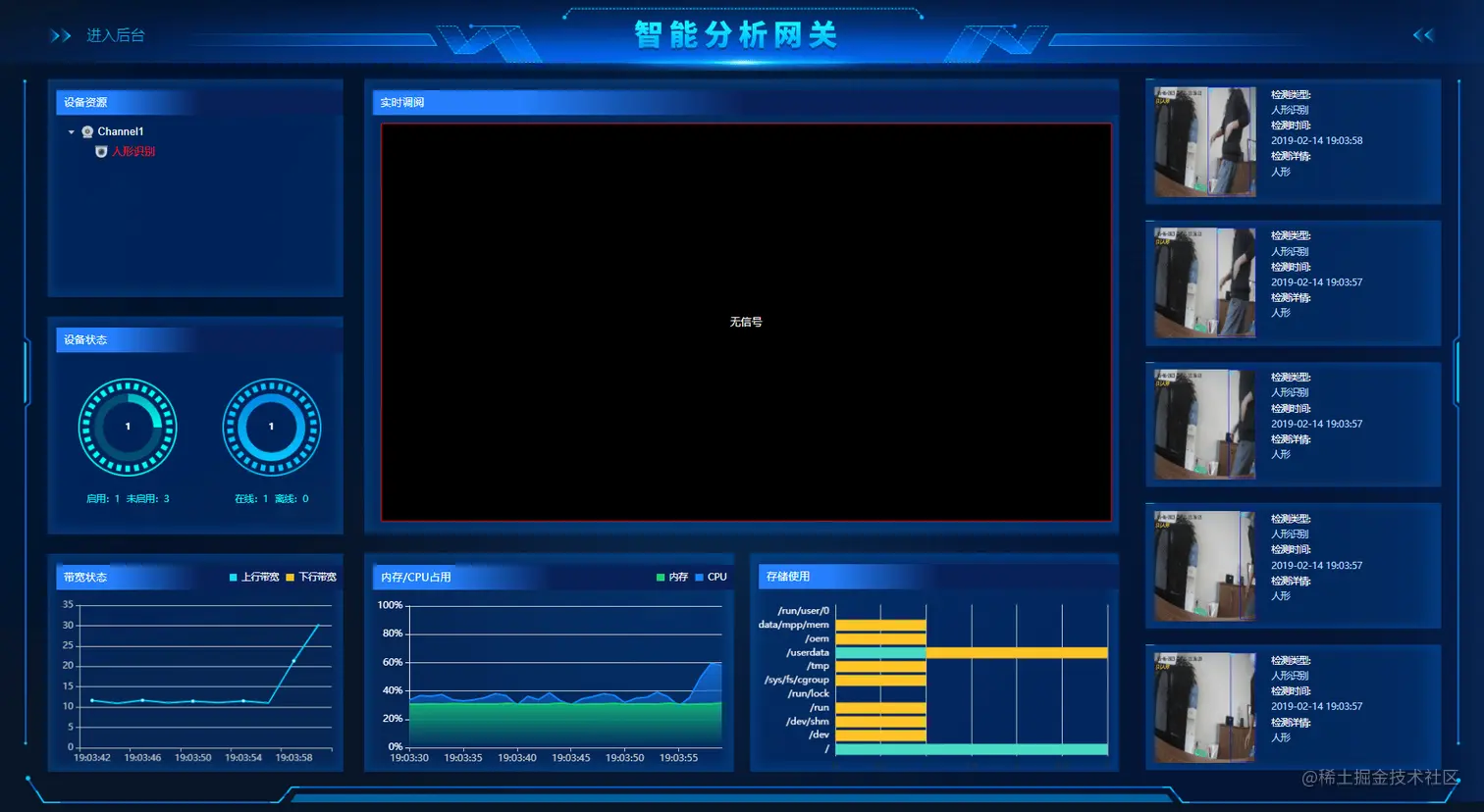 5)到这里配置就完成了,点击右上方的【智能分析网关】按钮,即可跳转到分析首页,查看智能检测与分析的数据。
