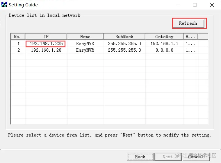 1)当设备开机后,在本地电脑打开EasySearcher搜索工具,以管理员身份运行EasySearcher.exe运行程序,点击【Refresh】即可搜索到智能分析网关的IP。