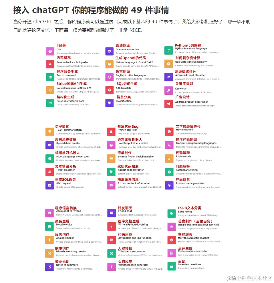 大家好,我是你们的小鱼姐姐,前段时间因工作原因体验了蛮多chatgpt,下面分享一下普通人平时工作生活中可以使用chatgpt来做啥。希望可以给大家一些思路,来让AI做咱们的助手,提高生产力。 首先来看一下官方的说明: