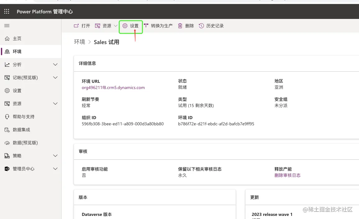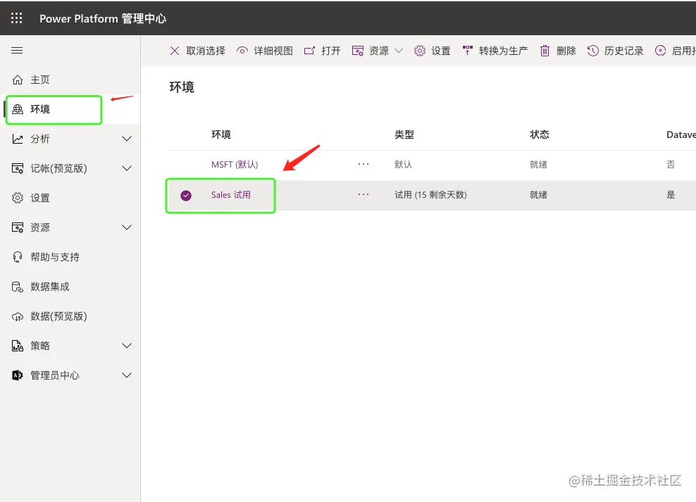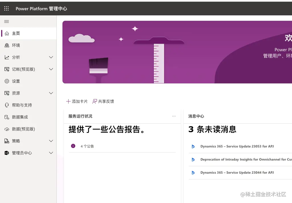 - 登录PowerPlatform 平台 admin.powerplatform.microsoft.com/home