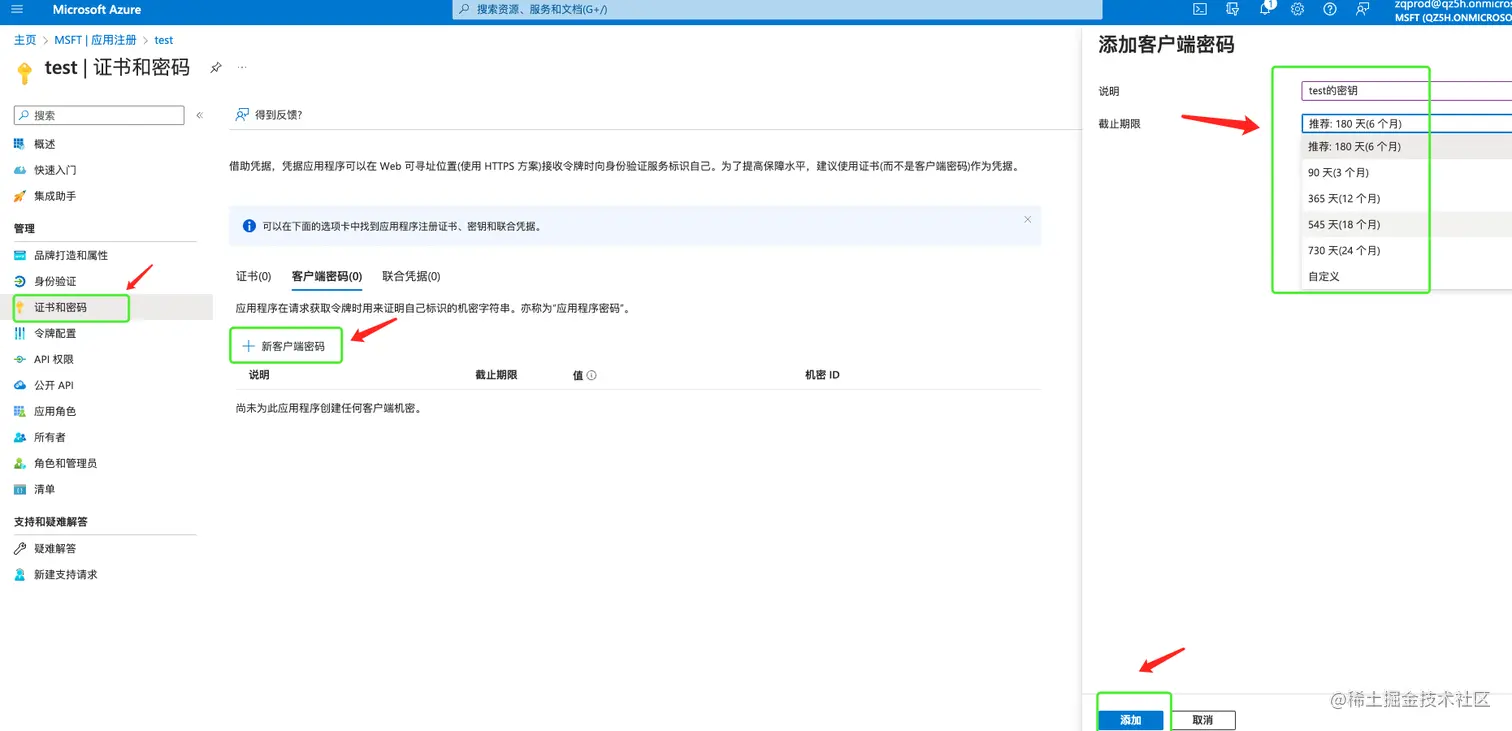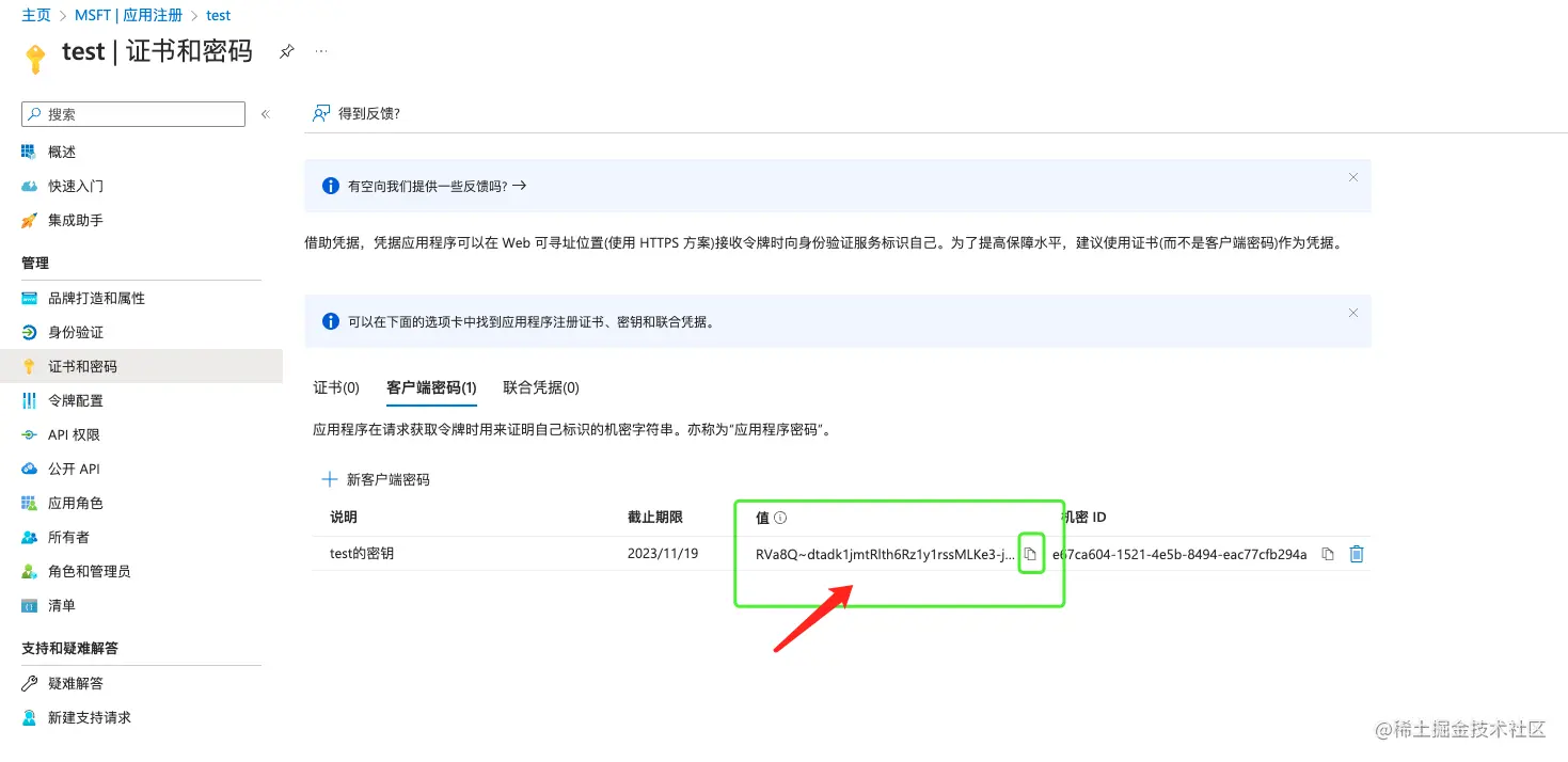 client_secret:即Azure注册应用程序概述中的"客户端凭据"下,添加的"客户端密码的值"
