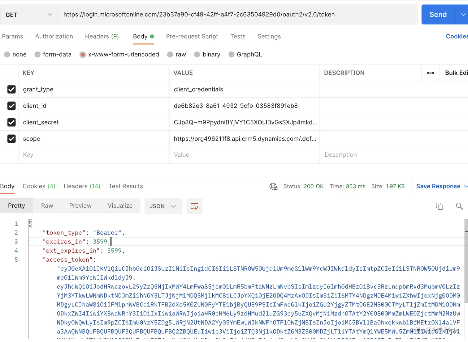最终scope的值:org496211f8.api.crm5.dynamics.com/.default