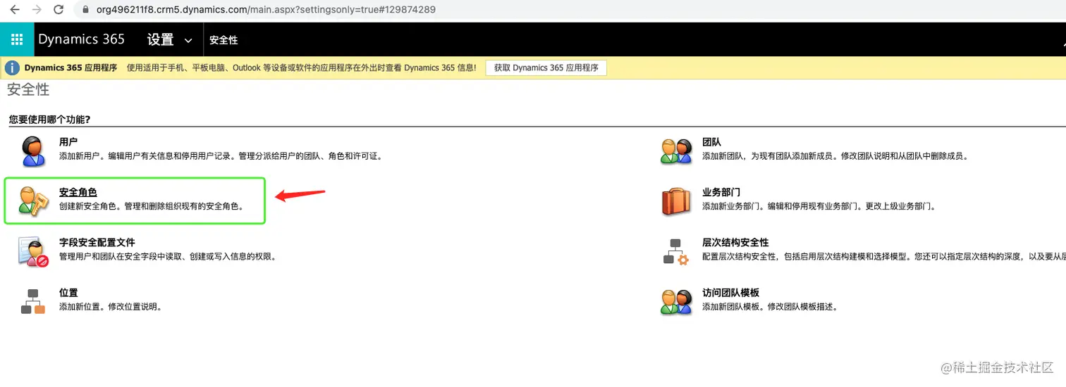 该安全角色即之前在Dynamics 365 Sales 中创建的安全角色