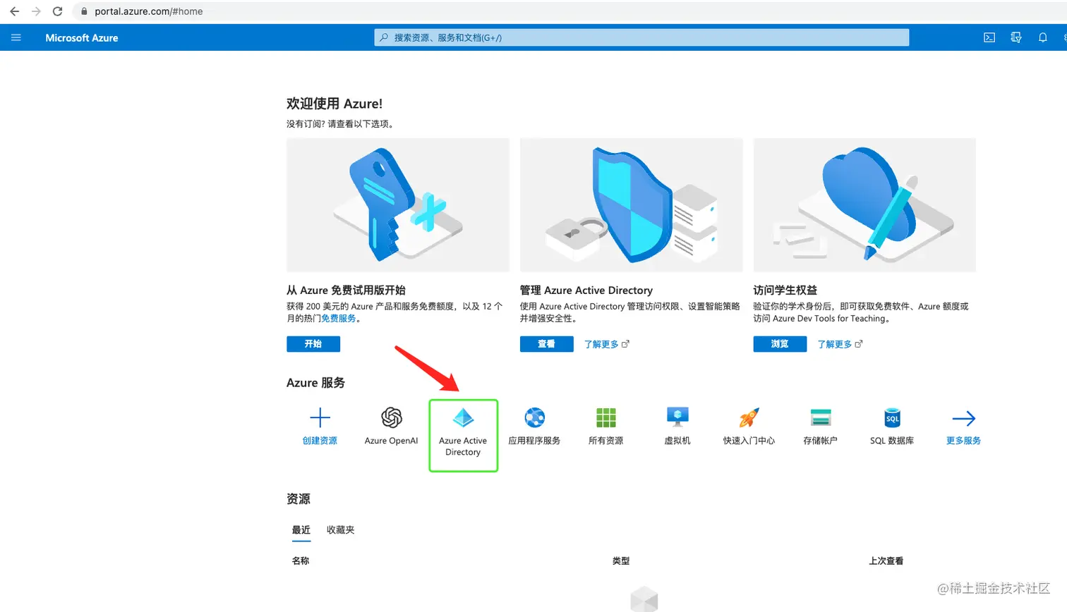 - 登录Microsoft Azure 平台 azure.microsoft.com/zh-cn/,选择Azure Active Directory服务