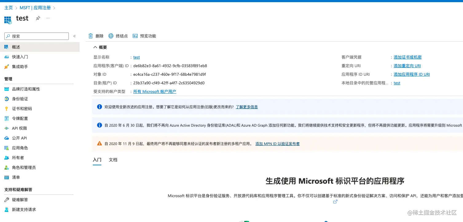 5 在概要中获取 应用程序(客户端) ID、目录(租户) ID
