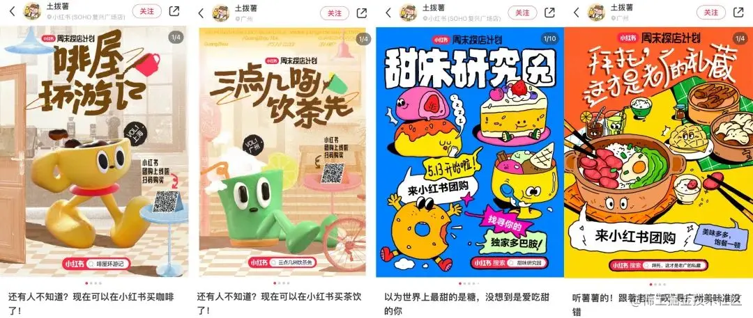 4月下旬,小红书本地生活官方账号“土拨薯”接连在上海、广州上线了多期团购活动,包括“啡屋环游记”“三点几咧饮茶先”“甜味研究园”“拜托这才是老广的私藏”等“周末探店计划”,涵盖咖啡、新茶饮、甜品、粤菜等美食品类。