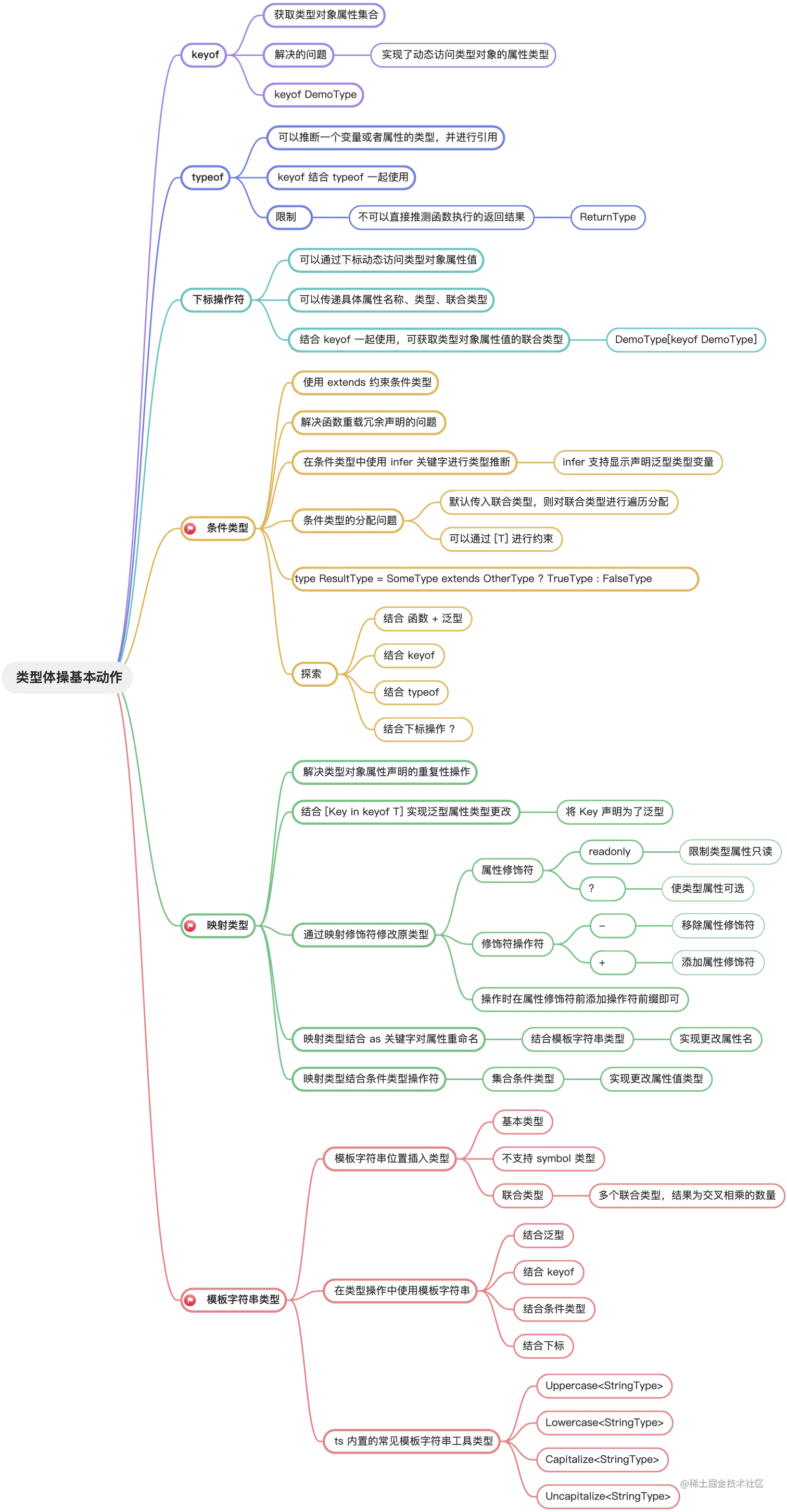 在上一篇Ts 类型体操基础动作——泛型中,主要分享了关于 Ts 泛型的基本操作。这篇文章我们站在泛型的基础上再继续学习下 keyof、typeof、下标操作符、条件类型、映射类型、模板字符串类型这几个动作。只有将基础操作熟练掌握后,我们才能将各个基础动作组合在一起,完成一套完美的 ts 体操动作。