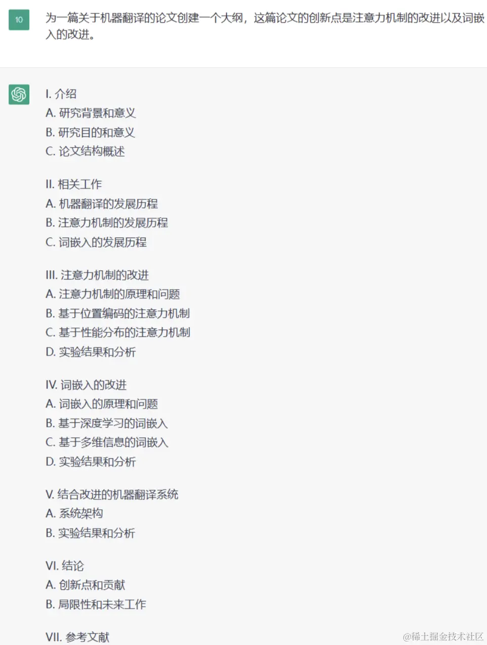 用途:这个功能对于研究生简直不要太爽了,一直在郁闷大纲怎么写,直接列出来大纲简直帮了我天大的忙!对于大纲中不理解的点,直接要求chatGPT给出进一步解释。代码也可以有!那一章的内容不太会写,直接让chatGPT安排,这样,一篇论文很快就写出来啦!