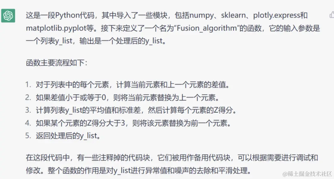 备注:上一个代码解释,我们可以看到,答案或许受到了代码中注释的影响,我们删掉注释,再来一次。对于解释中一些不懂的点,我们可以连续追问!