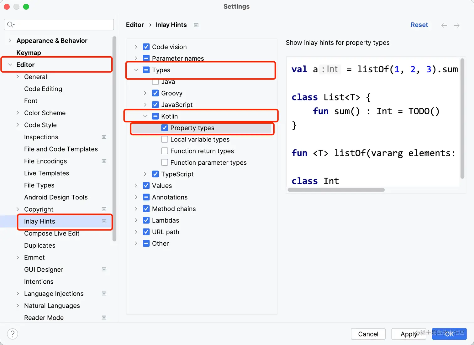 在IDE的设置中,我们可以通过如下设置,让IDE总是显示当前的类型