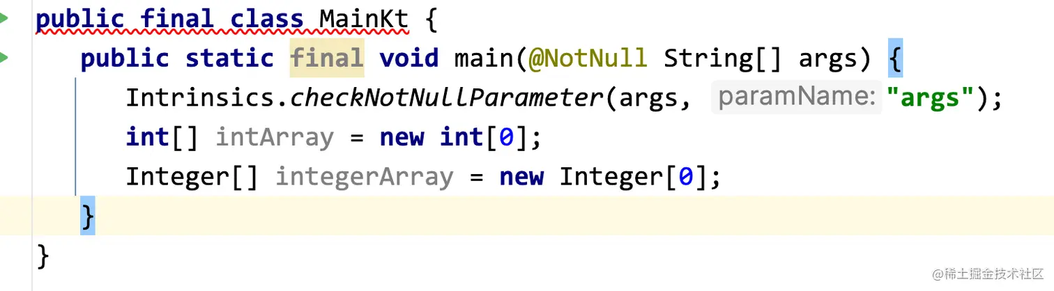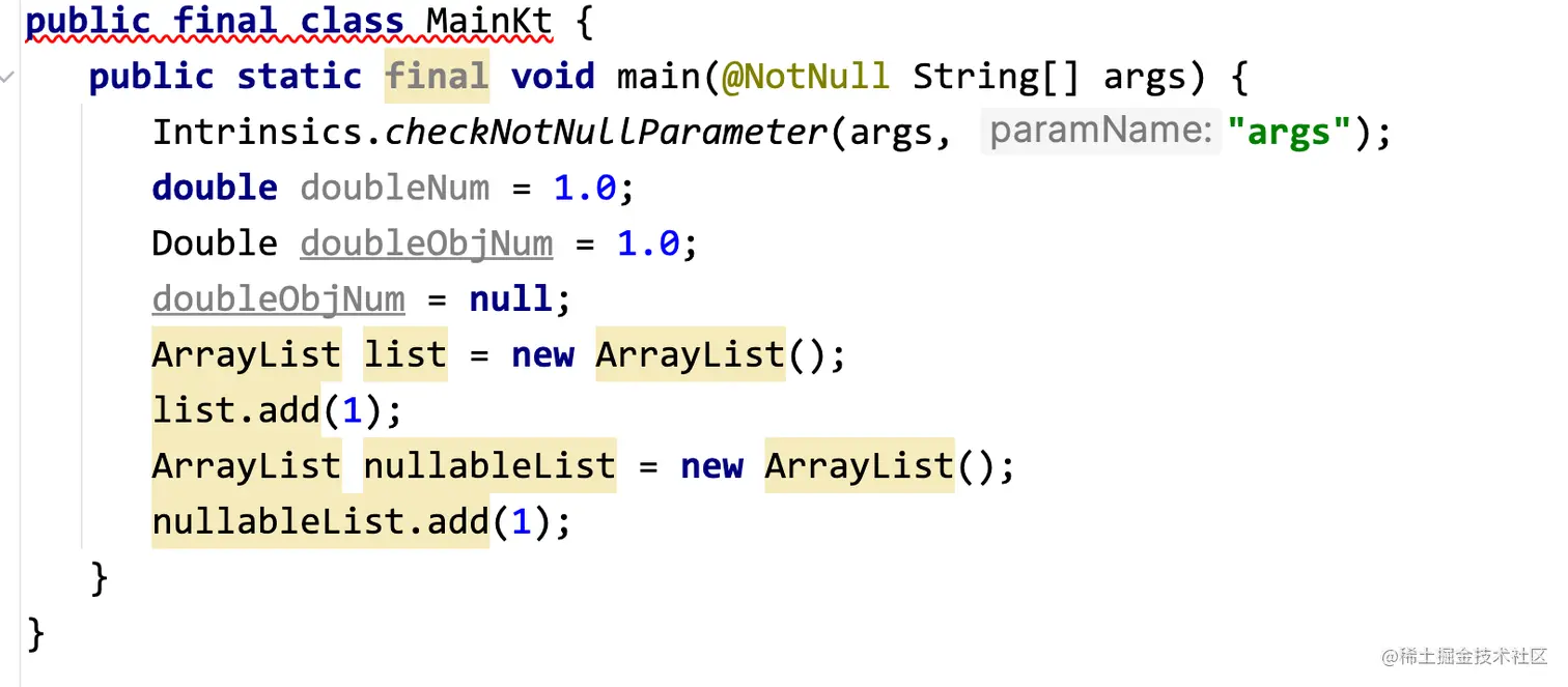 - 对于不可空的基础类型,Kotlin编译器会自动为我们选择使用原始类型,而对于可空的基础类型,Kotlin编译器则会选择使用包装类型