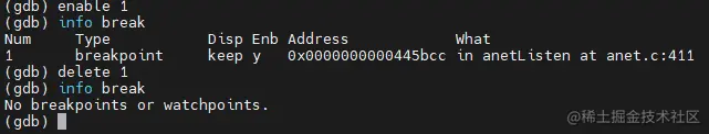 (gdb) delete 断点编号 // 如果不跟断点编号,代表删除所有