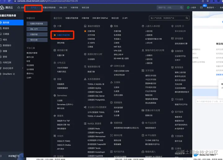 2 选择 【轻量应用服务器】