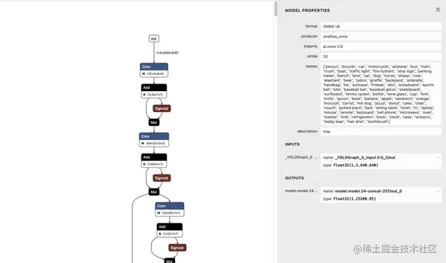 导出的 onnx 模型使用 Netron Viewer 进行可视化的结果如下: