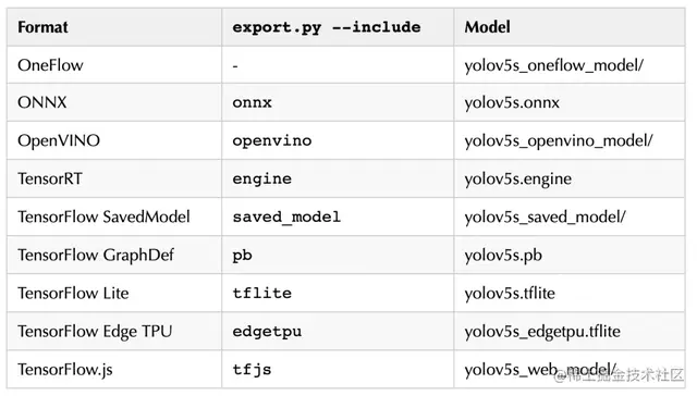 YOLOv5支持多种模型格式的导出,并基于特定模型对应的框架获得推理加速。