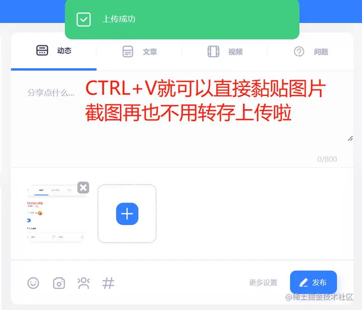 2.发动态支持直接复制图片到输入区域;