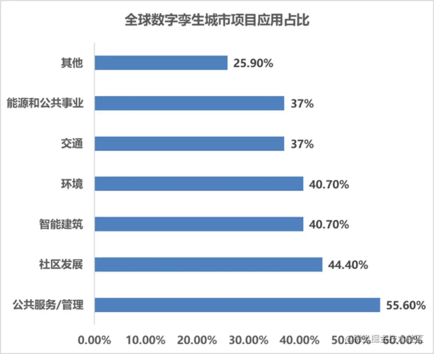 图 1 全球数字孪生城市项目应用占比,数据来源:WEF