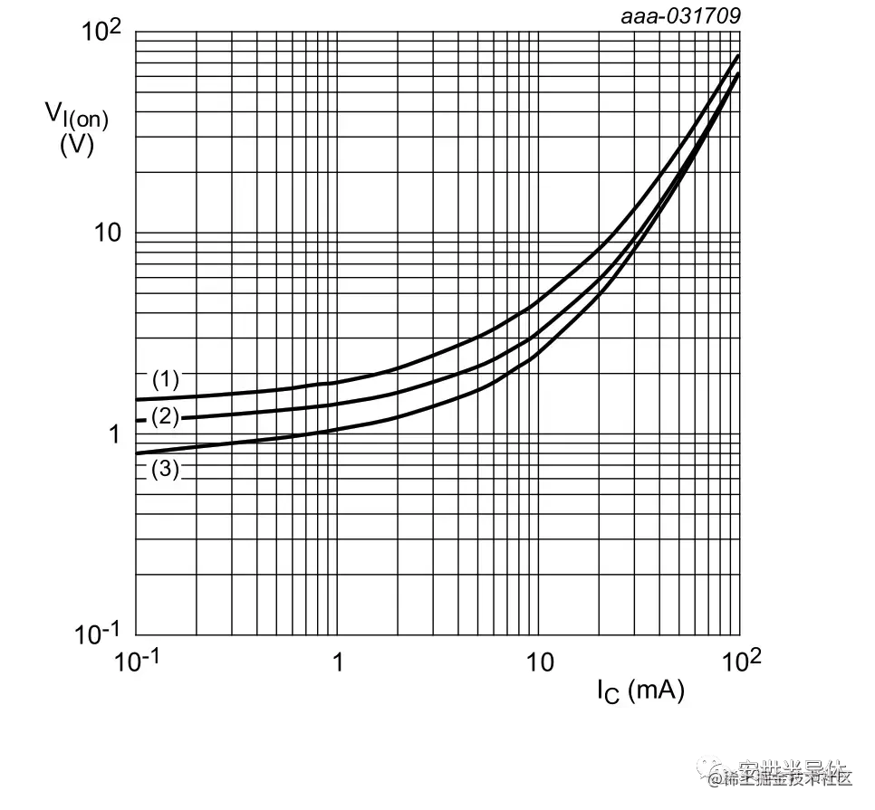 △ 典型导通状态输入电压与集电极电流呈函数关系
